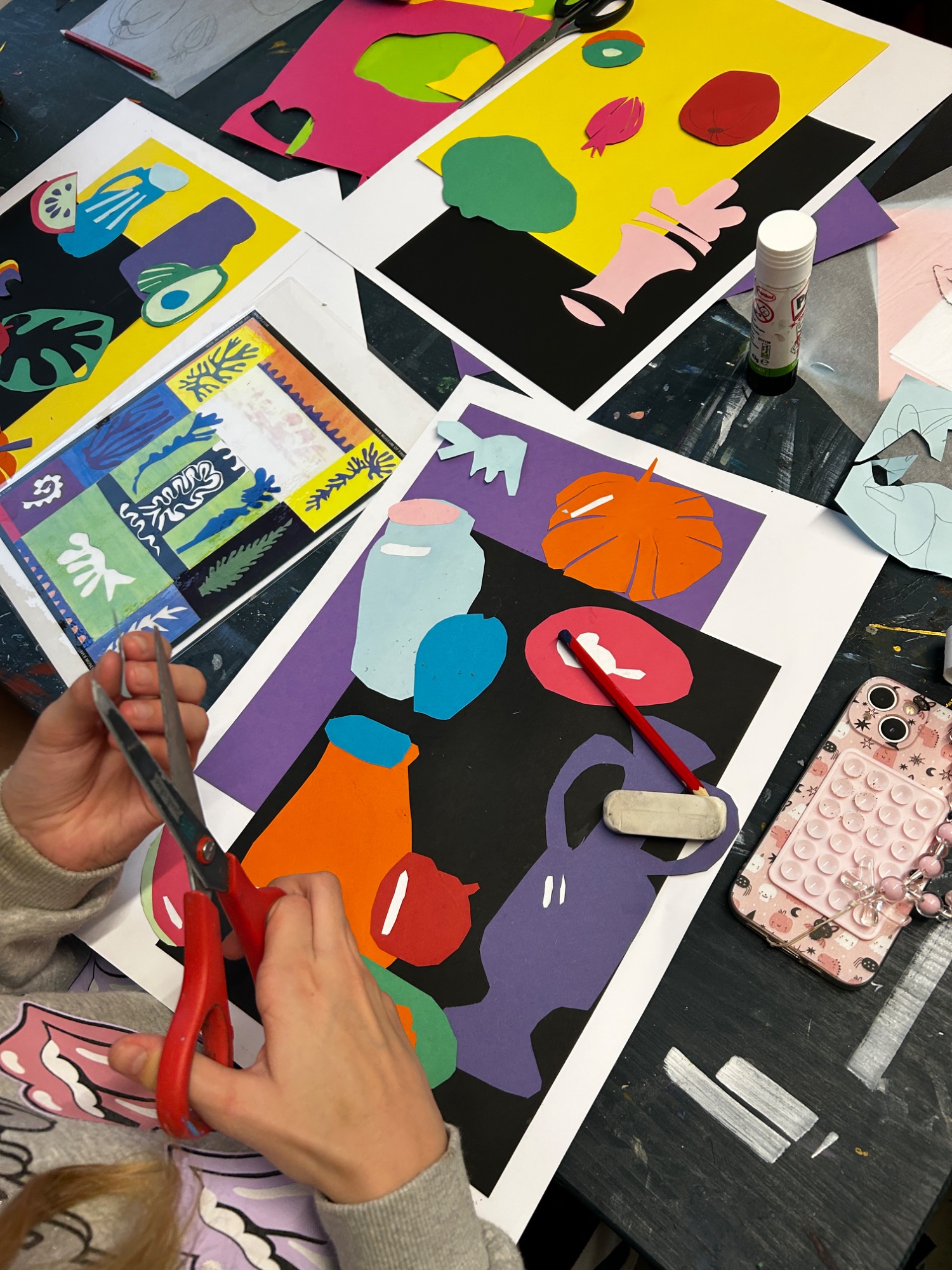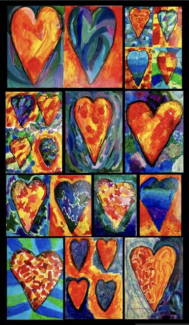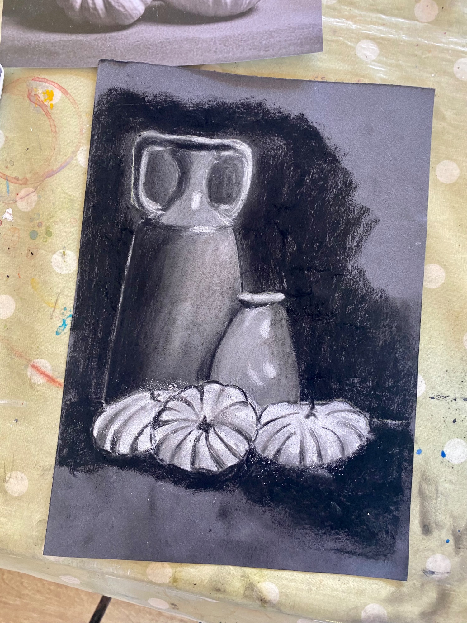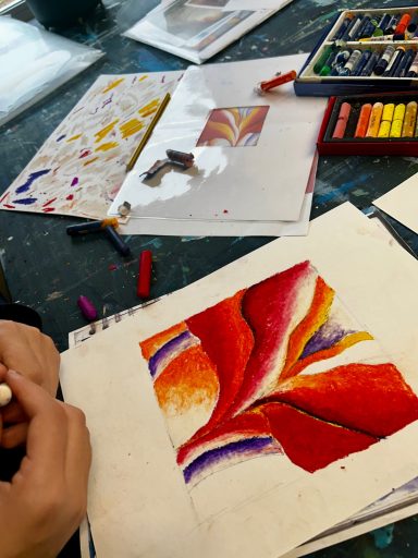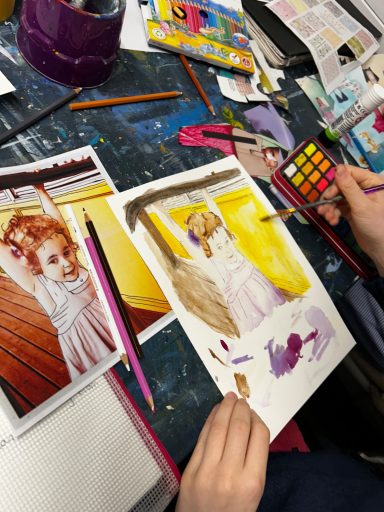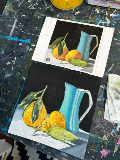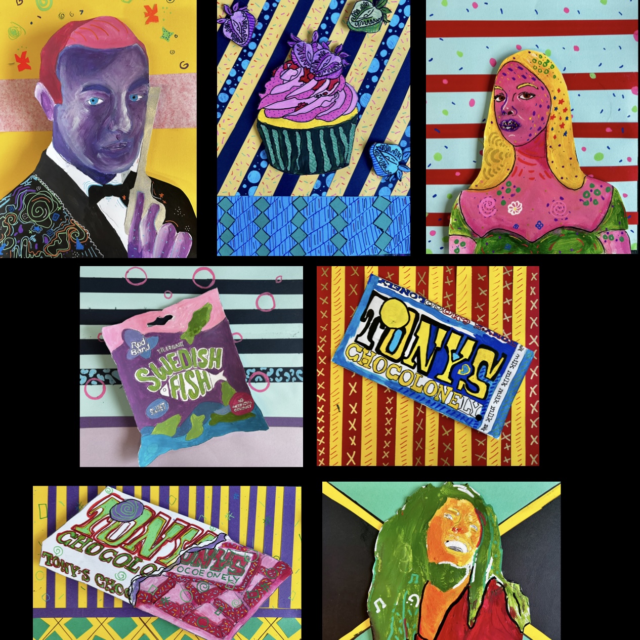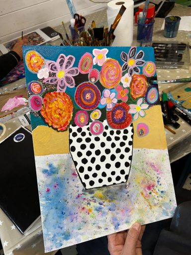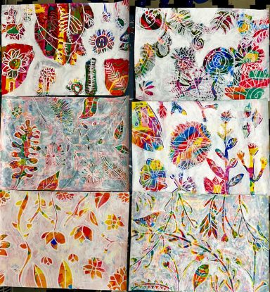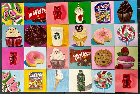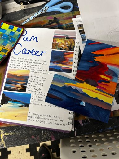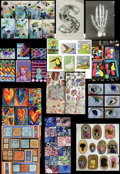 Art projects since 2022: including drawing, painting, printing, collage, oil pastel, chalk & charcoal, pop art, pointillism, gelli printing, card construction and photorealism.