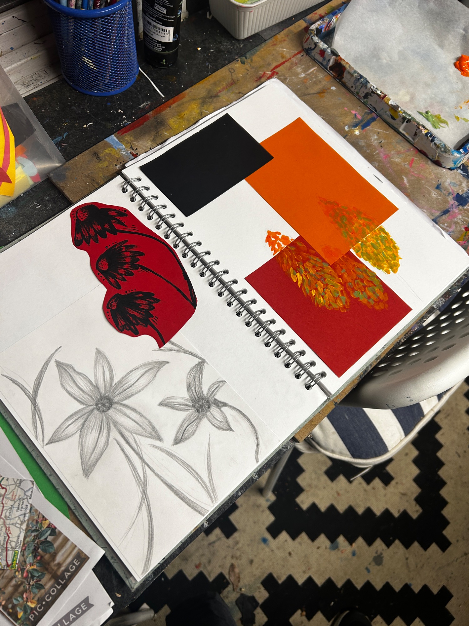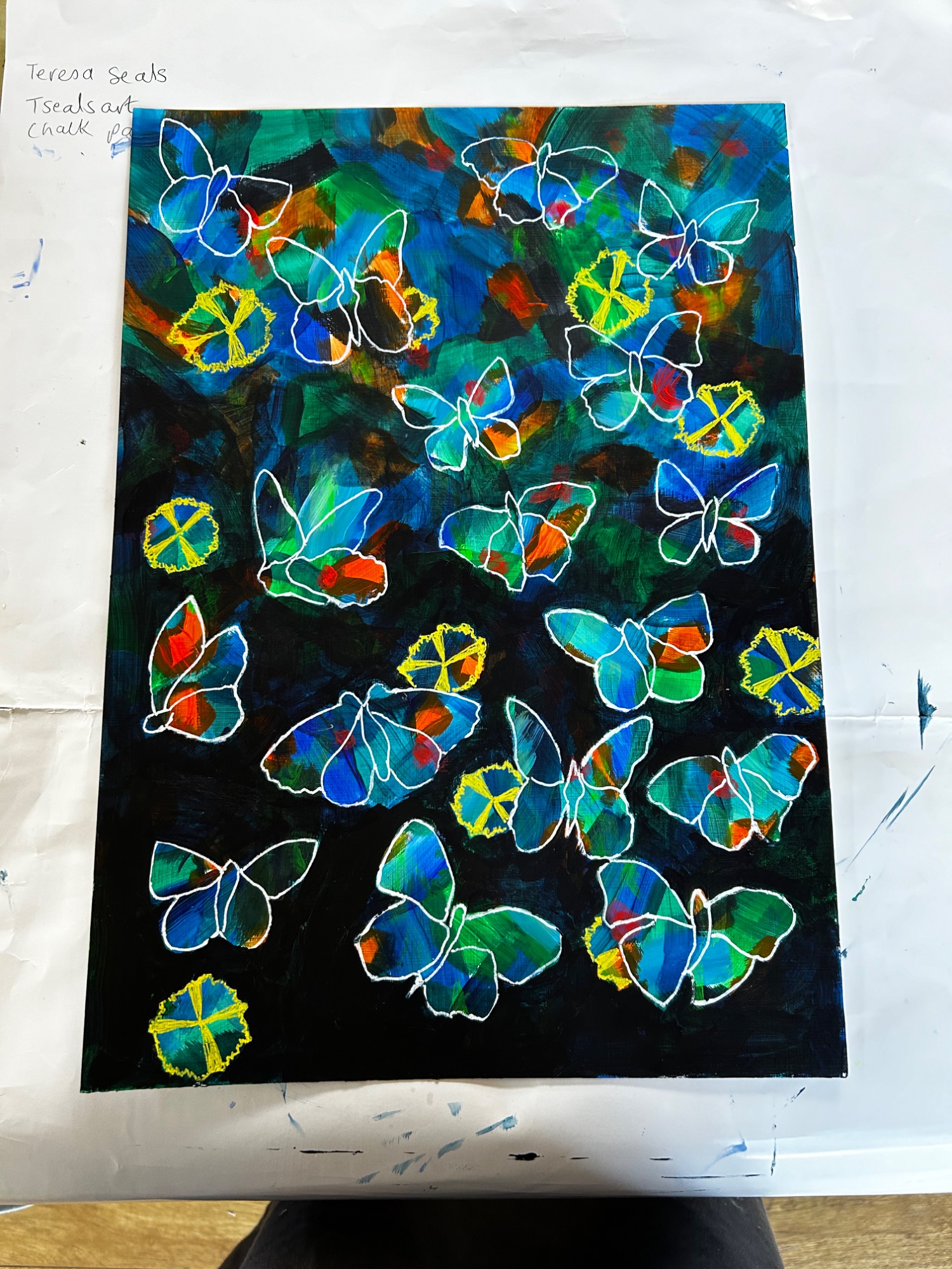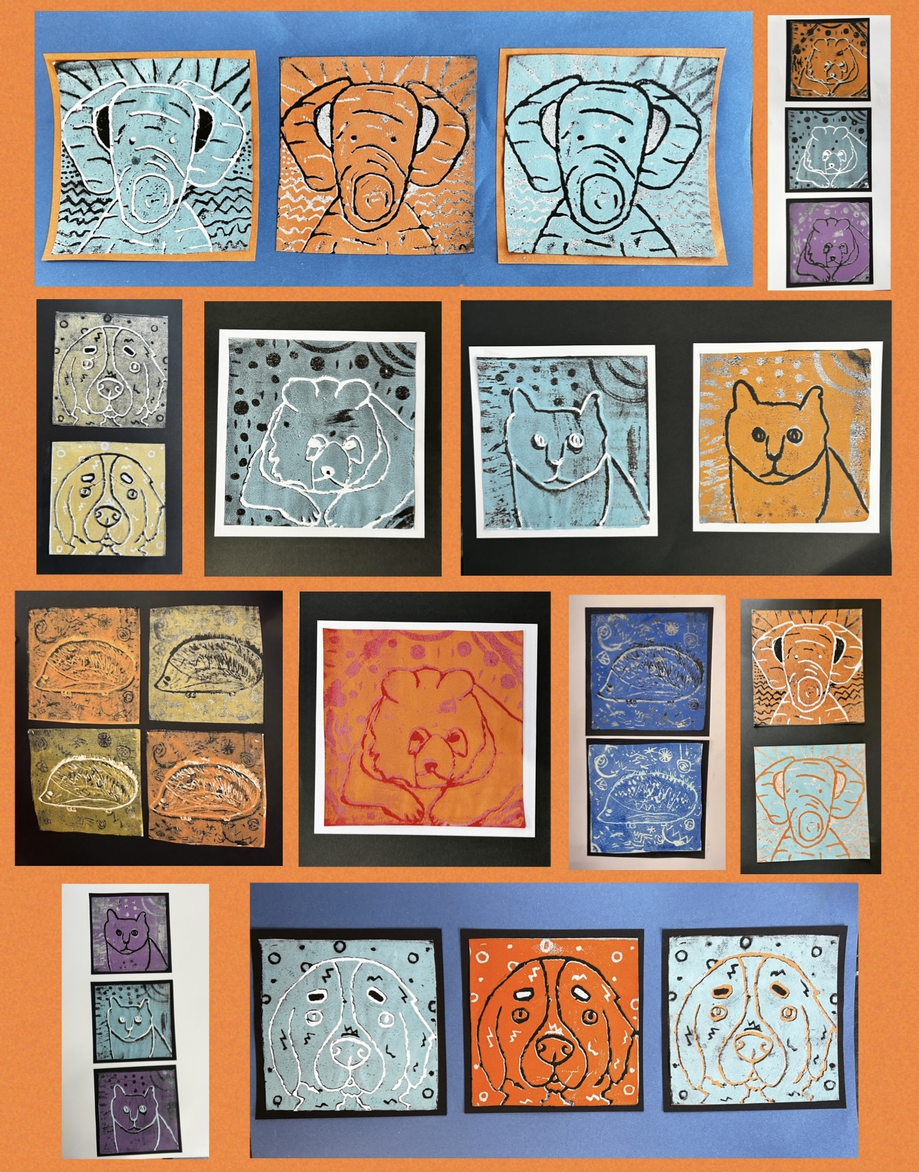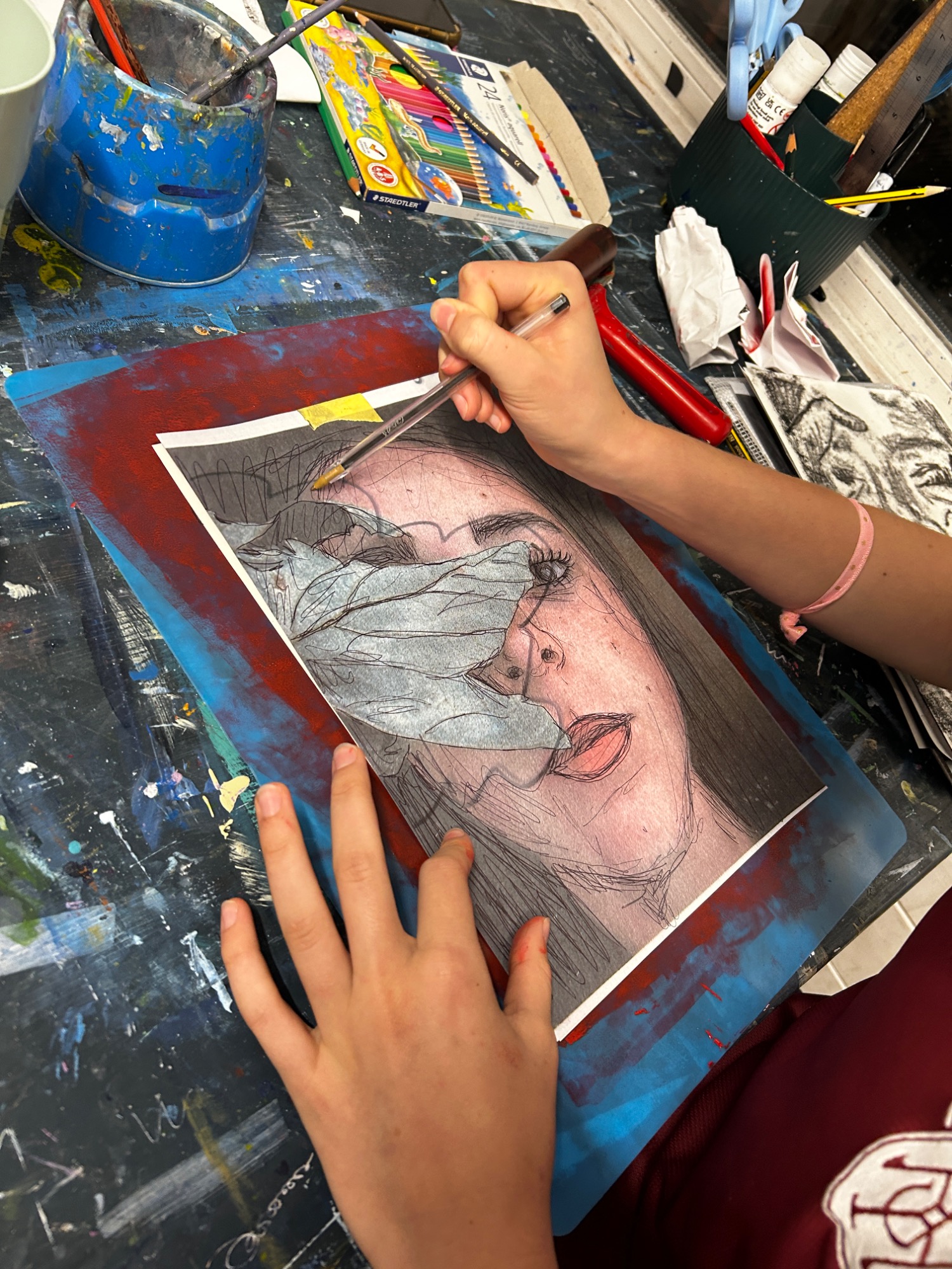 Art projects since 2022: including drawing, painting, printing, collage, oil pastel, chalk & charcoal, pop art, pointillism, gelli printing, card construction and photorealism.