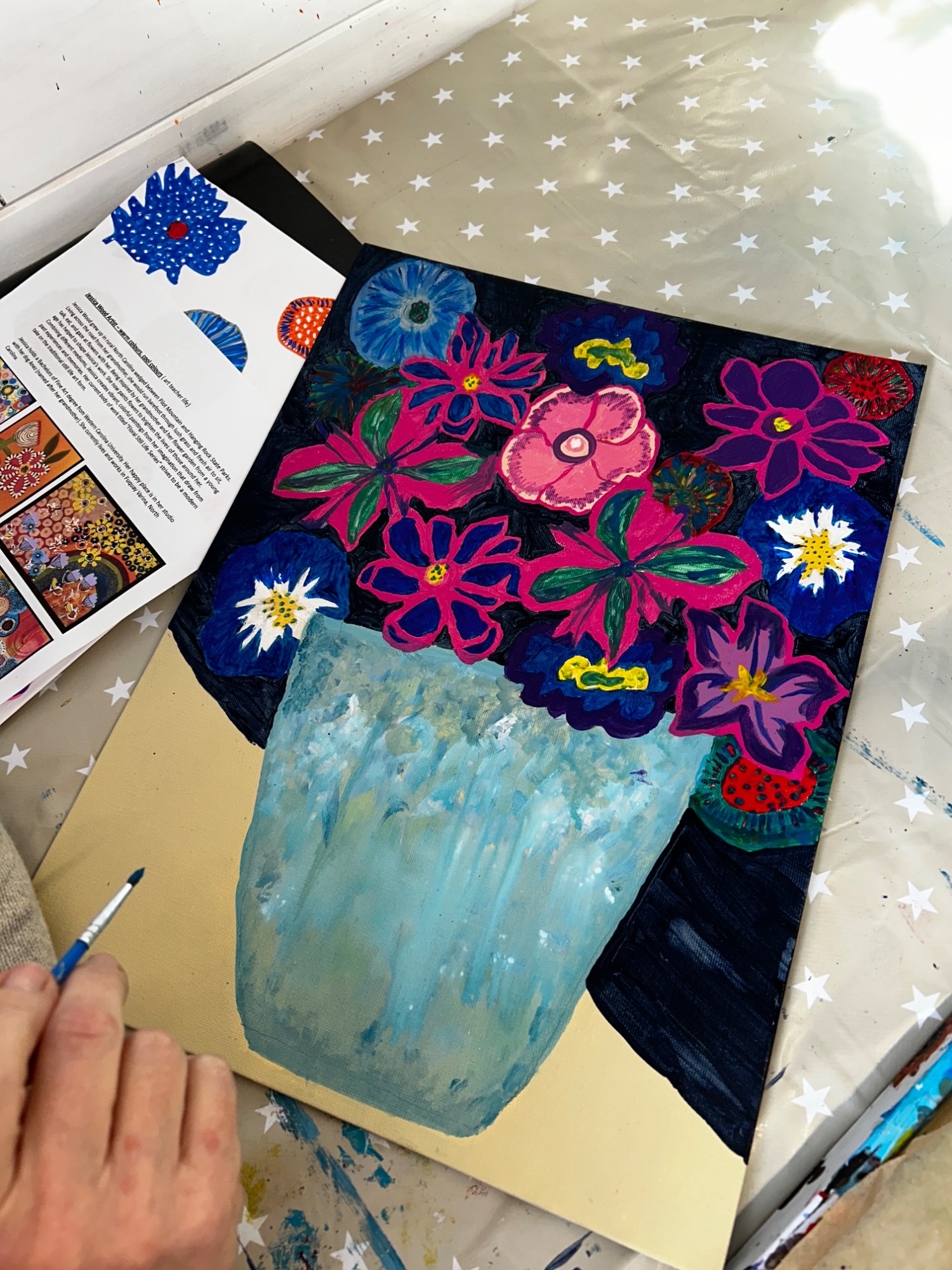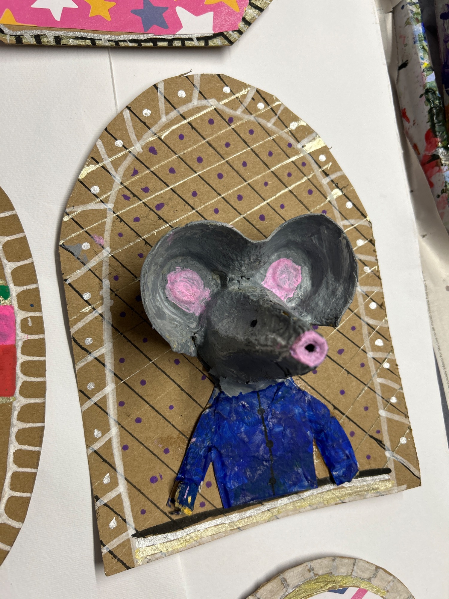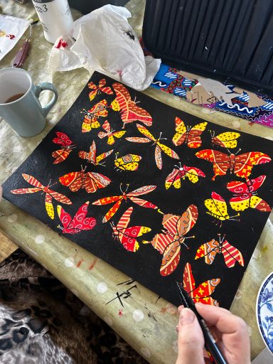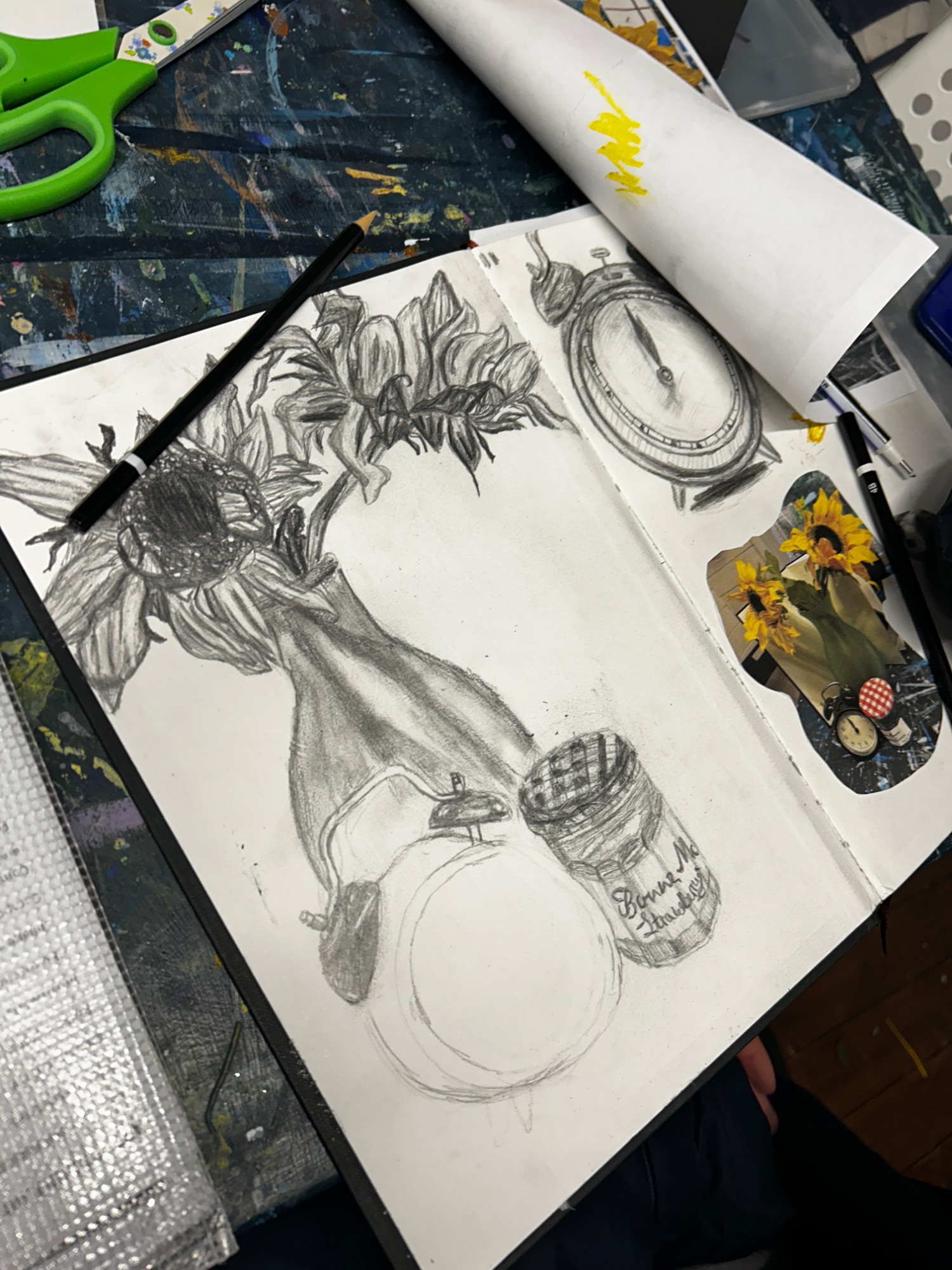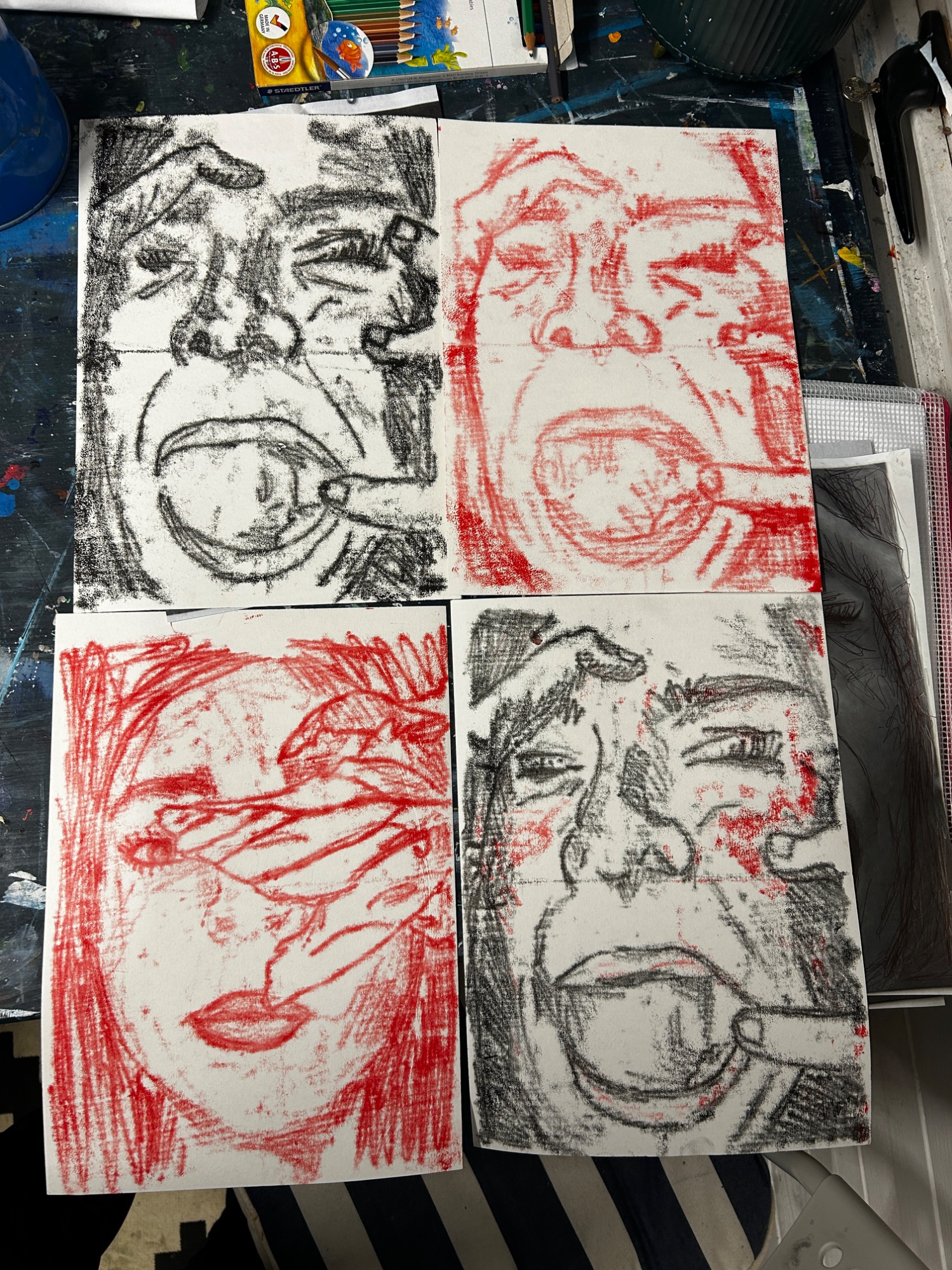 Art projects since 2022: including drawing, painting, printing, collage, oil pastel, chalk & charcoal, pop art, pointillism, gelli printing, card construction and photorealism.