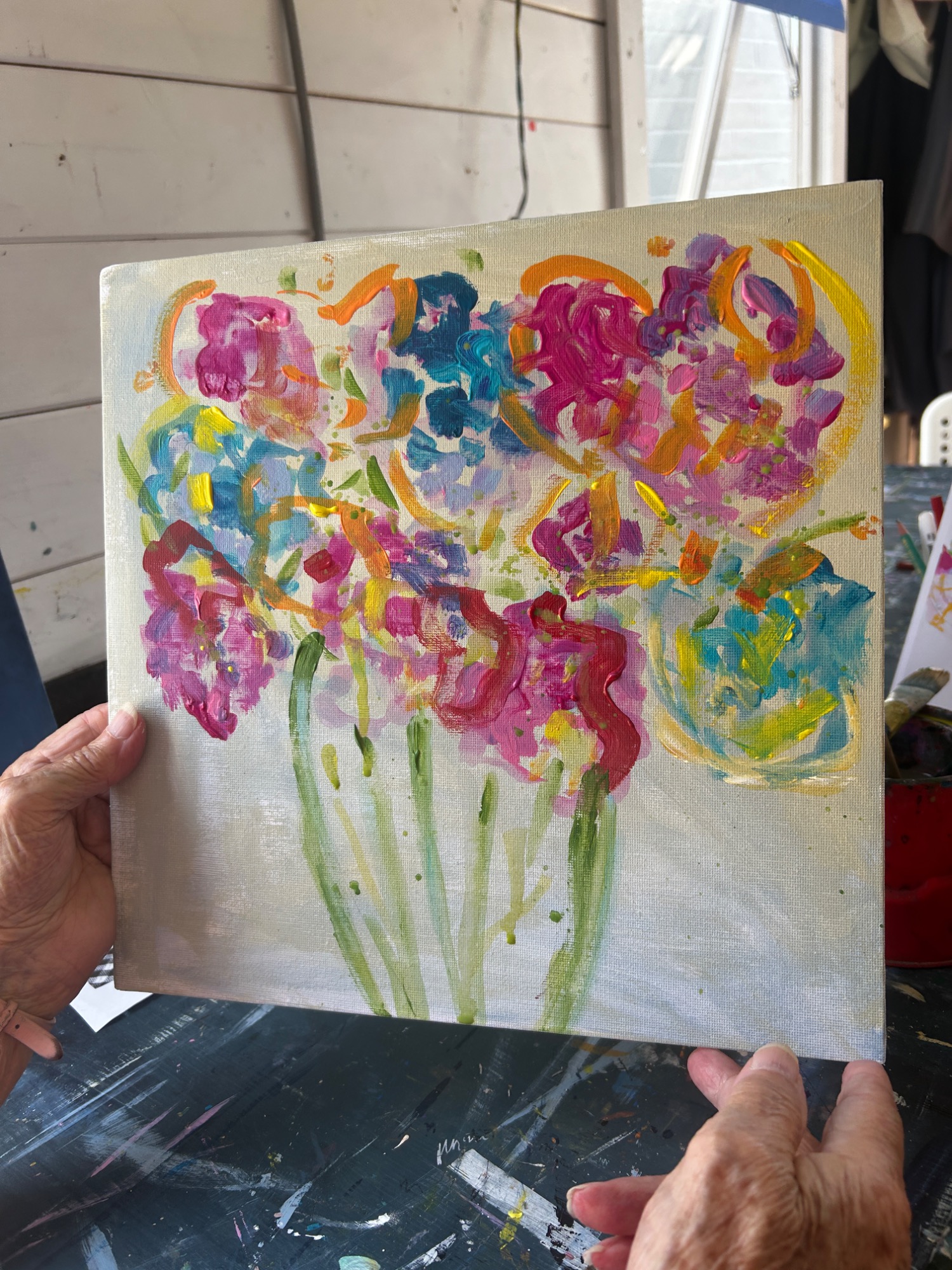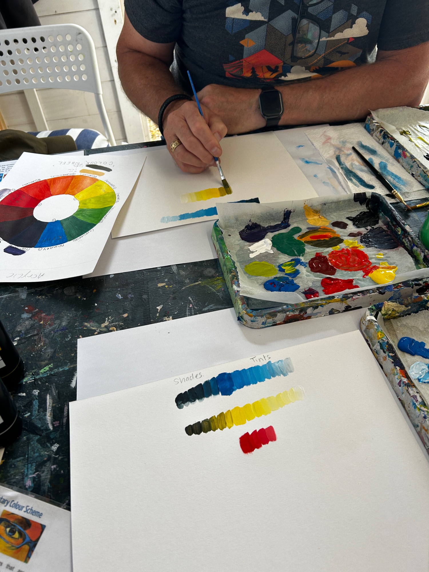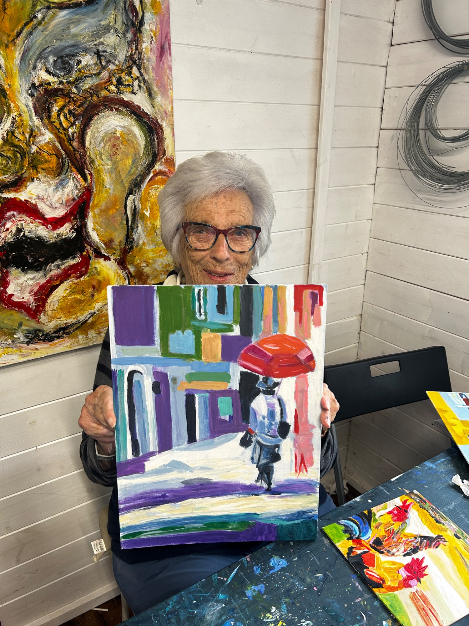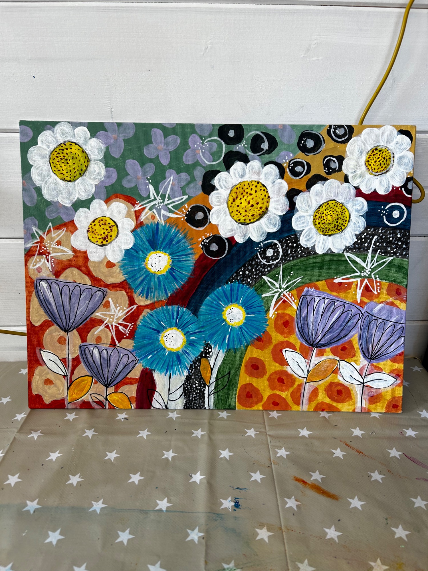 Art projects since 2022: including drawing, painting, printing, collage, oil pastel, chalk & charcoal, pop art, pointillism, gelli printing, card construction and photorealism.
