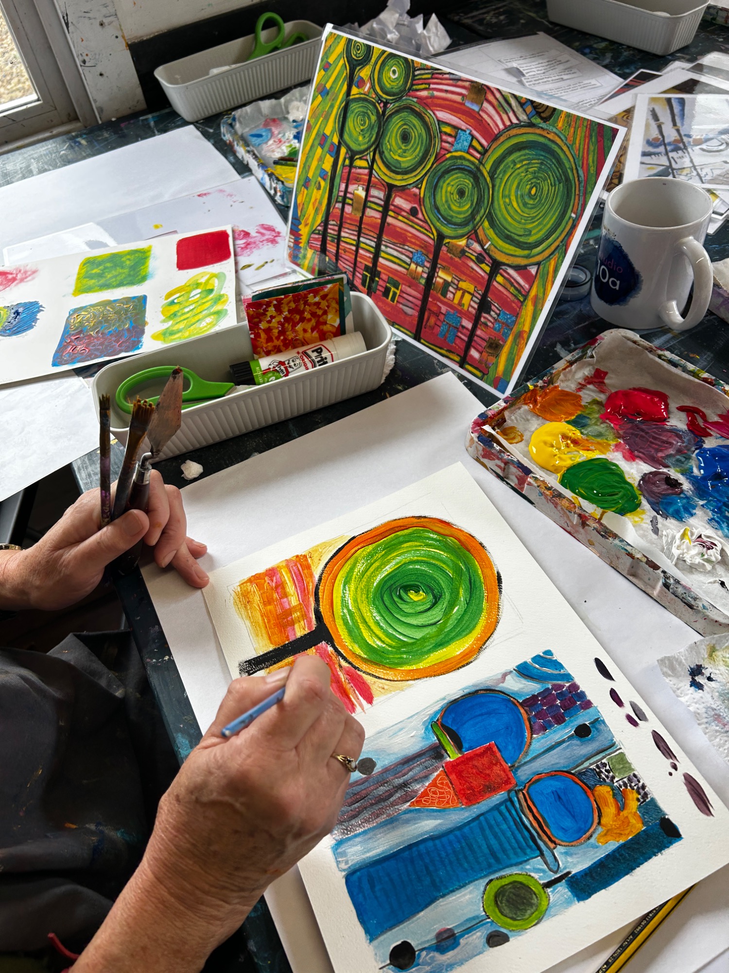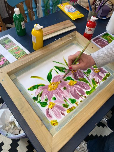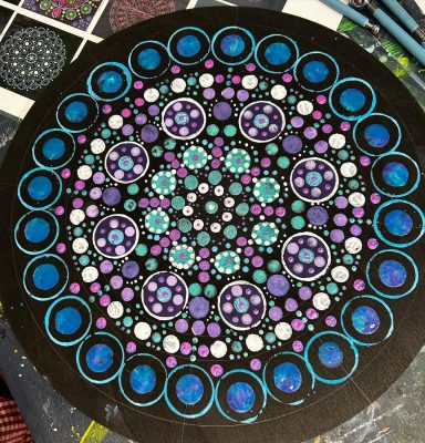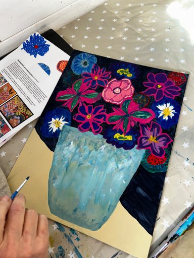 Adult art classes using a range of art techniques from painting to printing, mandala to drawing skills, gelli printing to photorealism